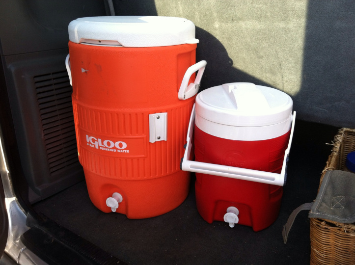 We bought these coolers for my birthday party in August. I figured it was reasonable as we’d surely have enough opportunities to use them between homeschool coop potlucks and our yearly parties. But they’ve been a life saver on this camping trip. We’ve not run out of water once.