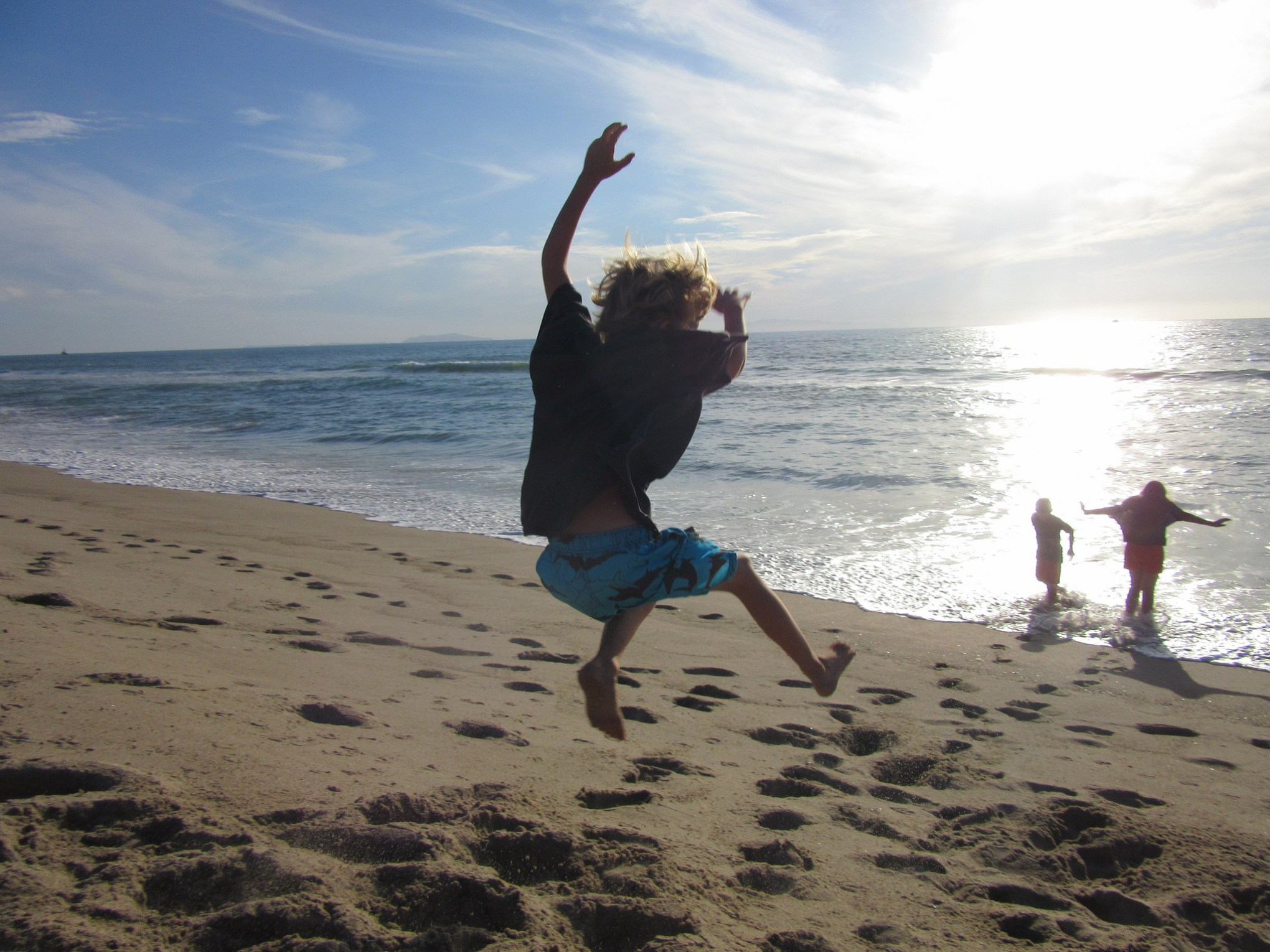 We had a brief stop in Carpinteria for our second dramatic occurrence of the trip. We had a mishap where a tree limb met the air conditioner on the top of our trailer. The kids played at the beach while Al figured out what to do.