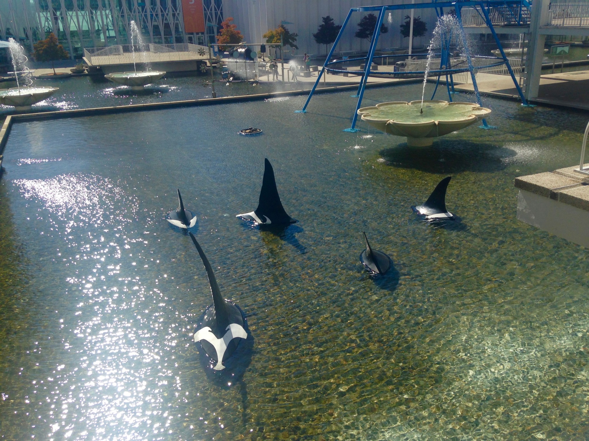 I worked at the Pacific Science Center the other day while the kids explored with Al. My “office” in the cafe was pretty meh, but the whales were impressive.