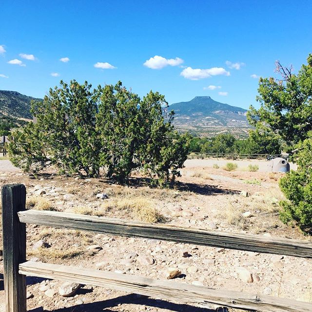 The view from the front door 🌞 . . . . . #abiquiulake #pedernalpeak #georgiaokeeffecountry #landofenchantment #newmexico #newmexicoskies #nmtrue #newmexicotrue #thearnoldexperience